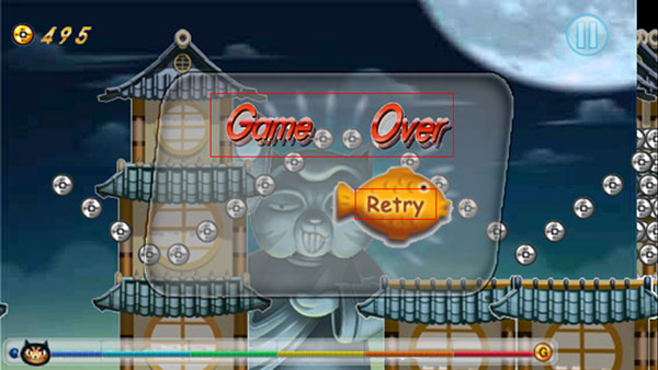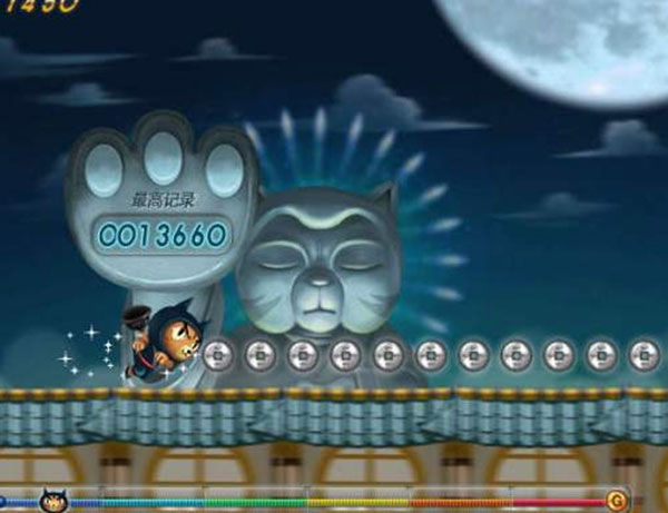 3、单次点击屏幕,忍者猫会完成一次标准跳跃;