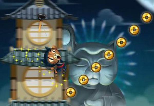 2、“放线”技巧是高手进阶的关键。在绳索荡起过程中,可通过松开手指控制绳长,从而调整忍者猫飞行的弧线轨迹,更高效地吃到金币。这一操作极为细腻,初学者容易因放线过长而撞墙失败,需反复练习掌握节奏。