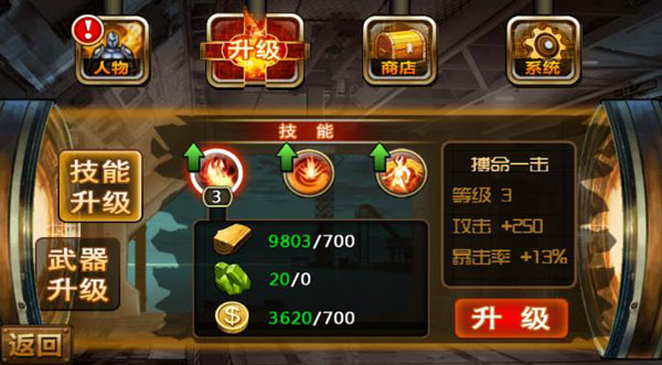 无论是提升技能威力还是强化武器性能,都需要消耗一定数量的金币与材料。每次成功升级都能显著增强角色整体实力,为后续挑战更高难度内容打下坚实基础。