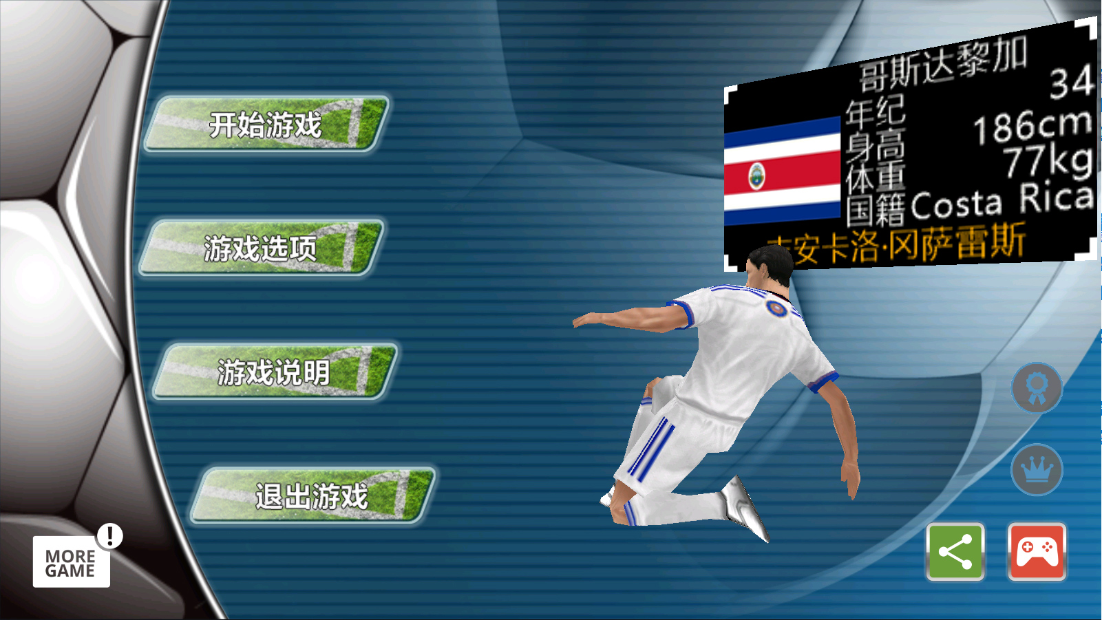 每次开始比赛前,可针对对手调整,球衣、换人、阵型。