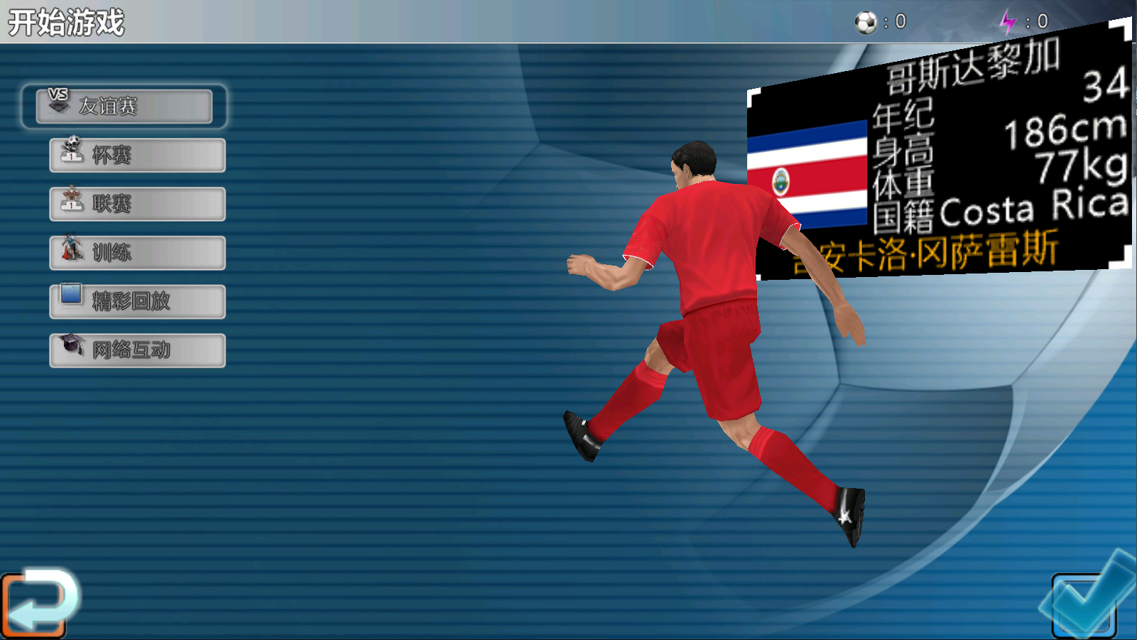训练模式,分为初级、中级、高级,选择一支你喜爱的队伍充分锻炼技巧。