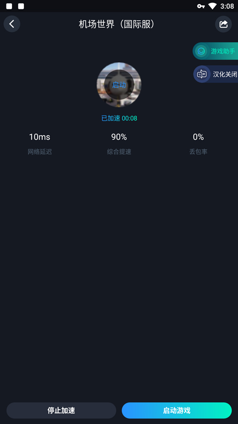 1、打开机场世界最新版,游戏需加速器启动,点击屏幕开始;