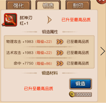 其次是装备锻造,该功能需通关副本2-10后方可开启。锻造所需材料相对稀有,主要通过两个渠道获取:演武商铺和精英副本。演武商铺使用演武场产出的演武币进行兑换,因此积极参与演武场对战是获取锻造材料的重要方式。