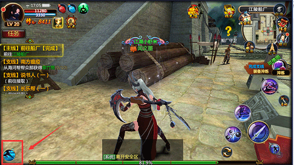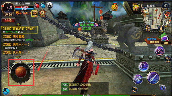 1、在进入游戏后可手指按住左侧感应区移动摇杆进行角色移动操作。
