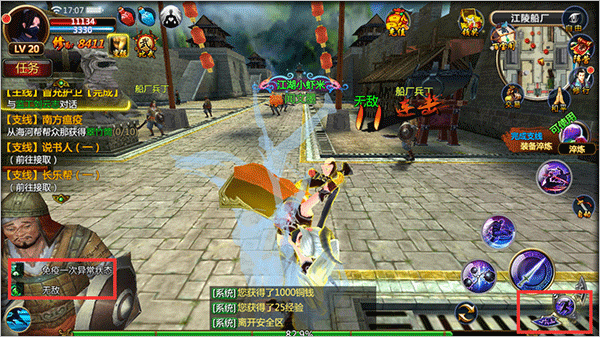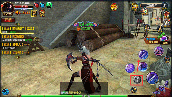 在遇敌时可以点击右侧普通攻击键进行普通攻击,并可释放技能对敌人造成大量伤害。需要注意的是,技能使用会消耗内力值(蓝条),且存在冷却时间(CD)。不同职业的角色拥有独特的攻击模式与技能效果,玩家可根据战场形势灵活选择释放时机,最大化战斗收益。