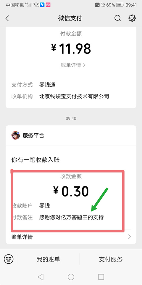 下图是提现到微信账户中的截图
