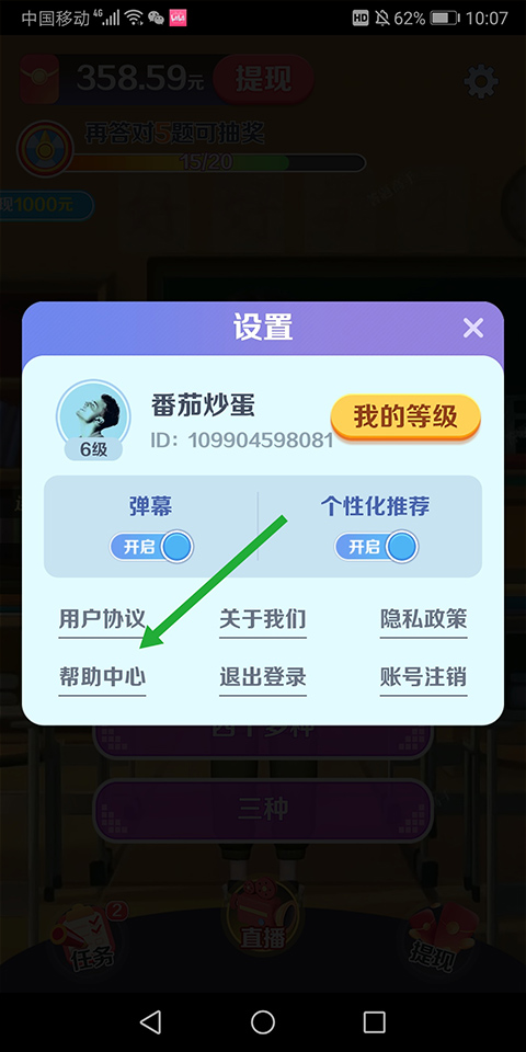 2、在弹出的设置对话框中点击【帮助中心】