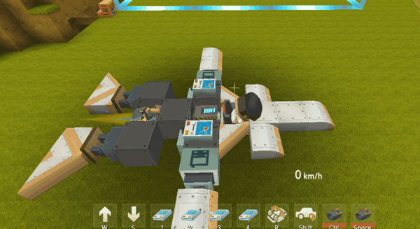 14、简易飞机至此制作完成!生成载具后坐上驾驶座,按下推进键启动: