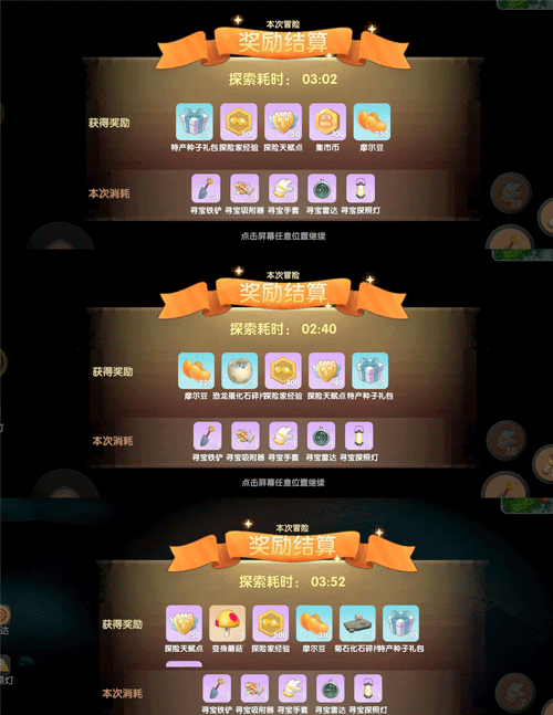 不仅能积累探险经验,还有机会获得集市币、恐龙化石以及摩尔豆等多种奖励。