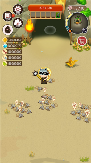 8、打石头怪时尽量避免携带熊,体型过大导致后排无法输出,实际效率远低于螳螂。实测30只熊不如30只螳螂,因螳螂体积小、站位密集,总输出更高。若坚持用熊,建议仅作前排肉盾,后排必须搭配远程输出单位。例如配置5只熊+其余狐狸,或直接上15只螳螂即可。图一通关后无需反复刷怪,仅需打两只石头怪(用于低阶抓高阶)即可转战图二,专注刷金币。先抓满25只小虫子,随后探索各种神秘洞穴。