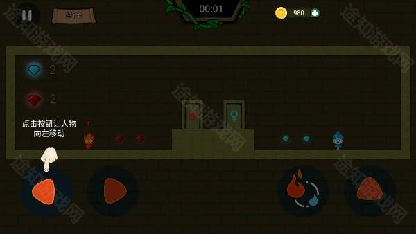 以单机模式为例,点击右下角的角色切换按钮,即可在冰与火两个角色之间自由切换,独立控制各自行动,开启冒险。