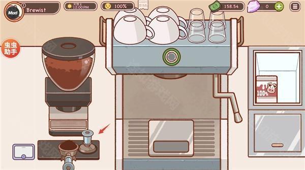3、点击旁边工具,将咖啡粉压实确保萃取均匀;