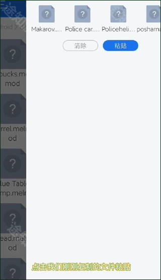 1、首先下载所需的甜瓜游乐场模组文件,使用“ES浏览器”打开该文件,全选并复制所有模组内容。通常你会看到4个模组文件,点击全选后进行复制。