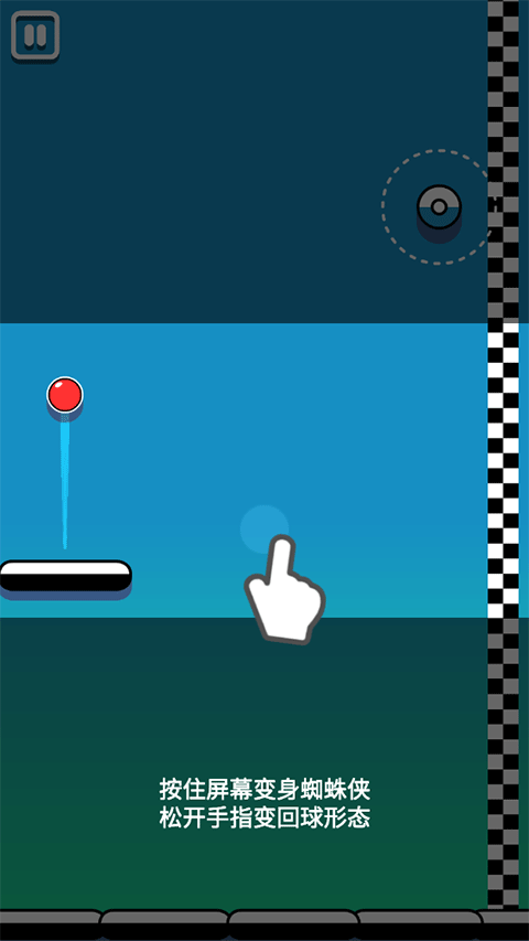 1、游戏中按住屏幕即可激活蜘蛛侠形态,释放飞钩进行跳跃;松开手指则变回球体状态,便于滚动或调整位置;