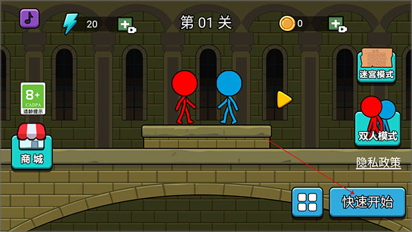1、下载安装好双人迷宫冰与火手机版,进入游戏后点击开始即可进入关卡。
