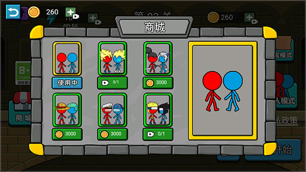 5、在游戏商城中,可使用闯关获得的金币解锁多种个性皮肤,为你的冰火角色换上新装。