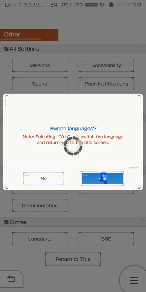 6、系统将弹出“Switch Language”提示,点击【Yes】确认,重启游戏后即可成功切换为中文界面。