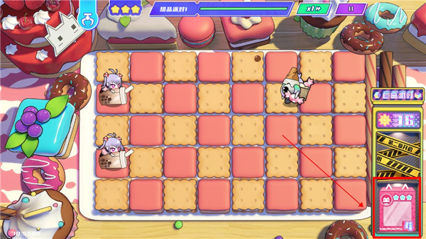 6、然后再从最后开始点盲盒(请务必等她们打完了一个,空闲了再点下一个,不要一口气把一条点完!!)出了攻击甜品建议先放boss一条
