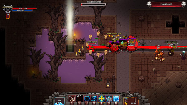 战斗讲究走位与策略,通常采用“打一下就走”的消耗战术。部分职业如弓箭手可布置陷阱,诱敌深入,有效控制强敌。每关地图均为随机生成,击败当前Boss后即可进入下一区域。若遭遇瓶颈,可前往低难度区域(如“羊村”)练级蓄力,稳步提升后再卷土重来。