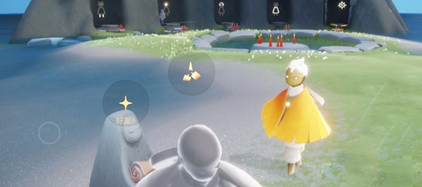 在石碑附近的人影处可打开先祖商店。在这里,可用蜡烛解锁新姿势或祝福,用爱心购买独特装扮,还能购买乐器与好友合奏。