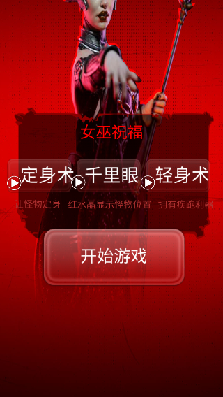 进入游戏后,玩家可选择女巫的祝福,获得定身术、千里眼和轻身术三项技能。每项技能的具体效果已在游戏内明确说明,你可以根据策略自由搭配,最多学习三项。技能越多,生存难度相对降低,但挑战性也随之变化。