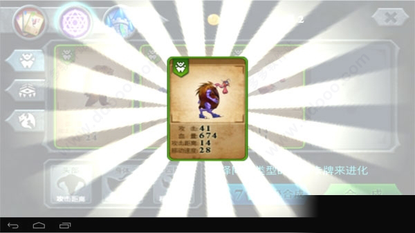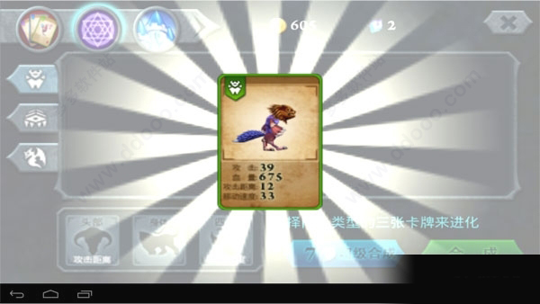 这是一款以单机为主的塔防游戏,包含本地关卡与竞技场两种模式。竞技场中,玩家携带三张卡牌与系统随机生成的对手比拼生命值总和,规则简洁明了。以下重点介绍本地战斗中的动物合成系统。