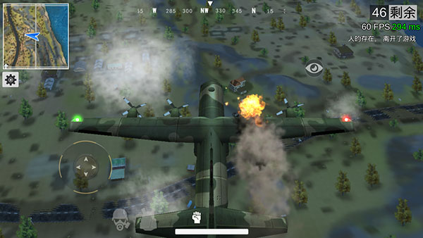 1、飞机飞行途中,可点击屏幕左上角地图查看航线位置,当飞越目标岛屿中部时,点击屏幕中央的跳伞按钮即可跳下;