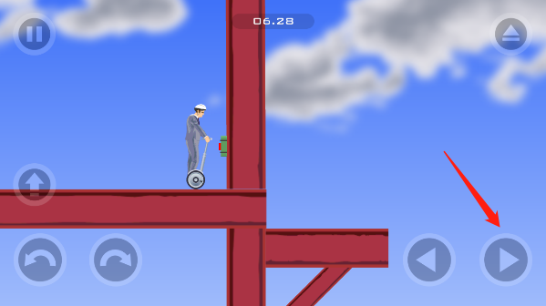 3、屏幕中总共有五个操作按钮,左下角的三个按钮分别是跳跃、左倾和右倾,利用左边的按钮可以调节平衡,屏幕右下角则是前进和后退。