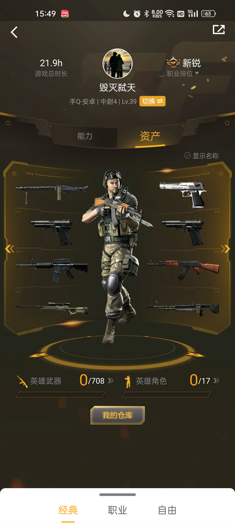 4、点击下方的我的仓库,就可以查看游戏中的所有游戏武器和道具了。