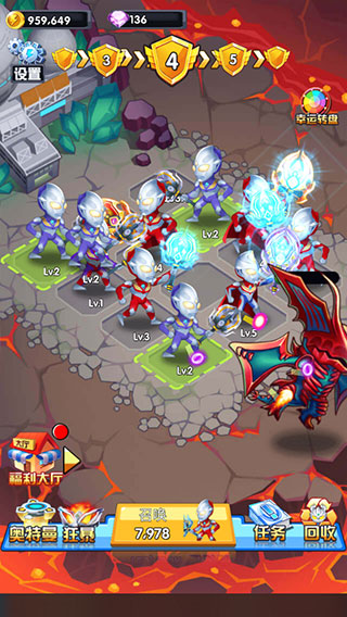 将任意奥特曼拖拽至地面带有颜色标识的区域,即可触发升级机制,提升其战斗力。