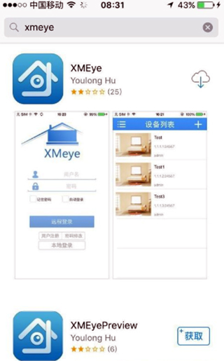 1、首先进入苹果App Store搜索“xmeye”,下载并安装XMEYE应用。