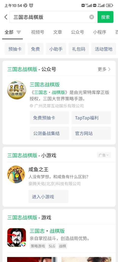 1、打开微信搜索“三国志战棋版”公众号,点击“免费预抽卡”进入活动页面;