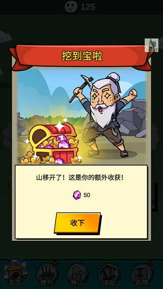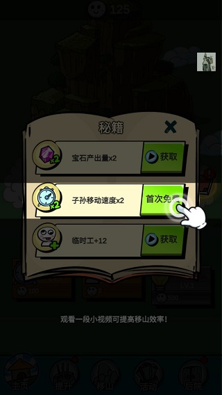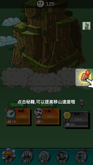 点击秘籍即可直接提升移山速度;