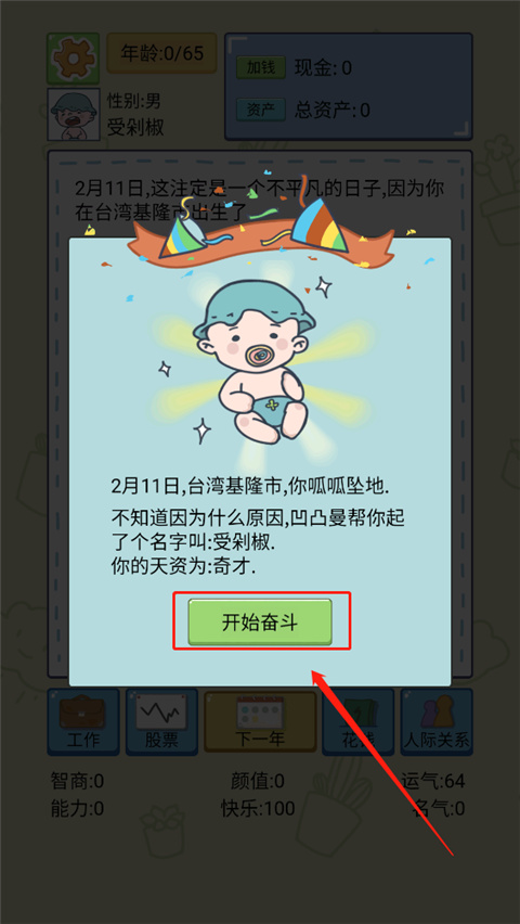 2、游戏初始你刚刚出生,点击“开始奋斗”正式开启人生之旅。