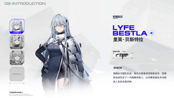 海姆达尔部队人气成员,同样出身于瓦尔基里职业赛场。性格开朗热情,以偶像身份活跃于前线,视里芙为宿命对手,却也在战斗中彼此扶持。