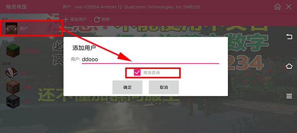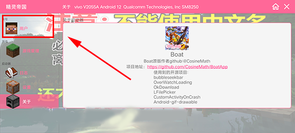 1、打开精灵帝国我的世界神奇宝贝手机版,进入游戏后点击左上角的用户;