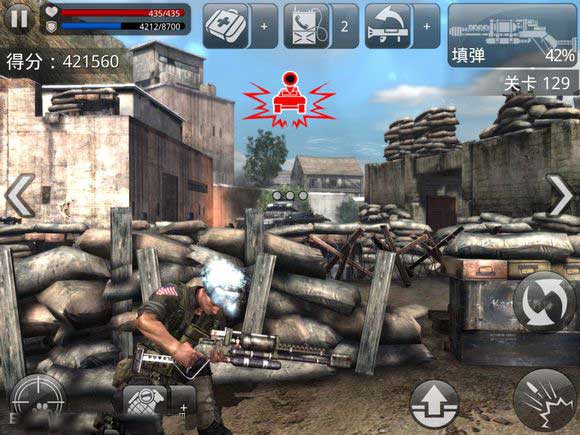 2、从脆弱易毁的掩体出发,向敌方直升机、吉普车及重兵驻守的基地发起猛烈进攻。在多样化的任务中,抵御一波接一波的凶悍敌人,感受步步惊心的战斗节奏。