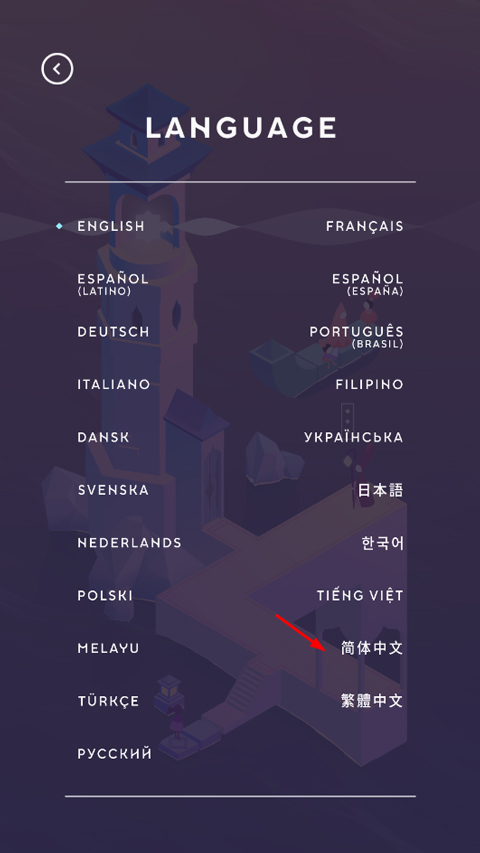 纪念碑谷3怎么设置中文?