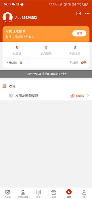 在收益中,可以通过收徒来赚取金币,并且支持提现: