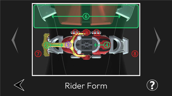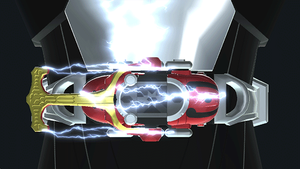 3、插入腰带后,通过扳动机关完成变身;再次操作可释放必杀技或执行Cast Off脱壳动作。