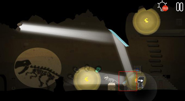 第十五步:调整图中红框内的镜片角度,在墙上投射出恐龙遗骸的图像。