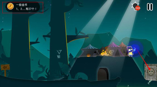 第十九步:前往右侧场景,将获得的金币投掷到右侧的图像上。