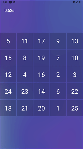3、点击“开始”后,左上角计时器立即启动,你需要在最短时间内按从小到大的顺序依次点击屏幕上所有数字;