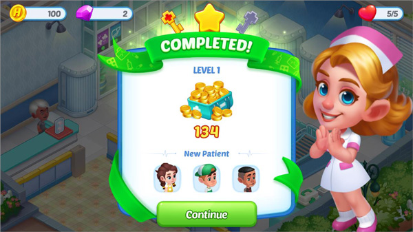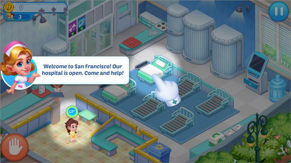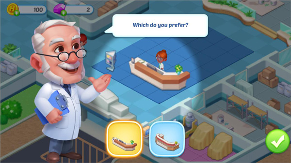 2、完成第一关后获得的星星可用于购买全新家具,自由重新布置和美化你的医院空间;