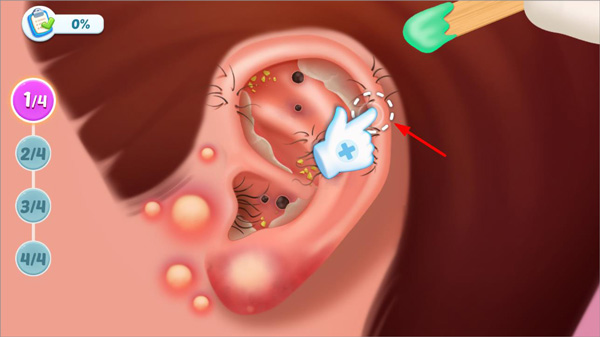 1、玩家进入游戏后,首先会进入新手引导关卡,学习如何为病人清理耳道污垢及处理发炎部位,掌握基础操作流程;