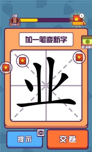游戏操作简单易上手,只需根据每关提示对汉字进行合理变形即可。在不断闯关的过程中,不仅能提升对汉字结构的理解,还能积累更多词汇量。如果你喜欢动脑解谜,又想在休闲时光中赚点零花钱,那就赶紧下载体验吧!
