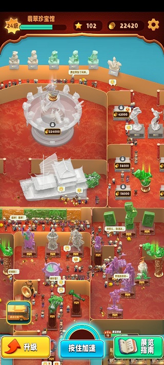 作为展馆主理人,你需要不断收集高品质翡翠作品,吸引游客参观并获取门票收入。用收益升级展馆、购入更高档展品,形成良性循环,打造属于你的翡翠帝国。