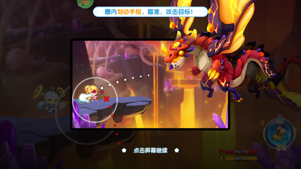 3、在战斗中,通过在屏幕圈内滑动手指调整角度与力度,精准瞄准后即可发射攻击目标;