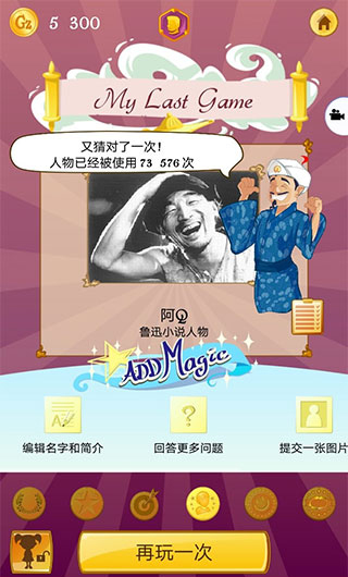 4、如果对最后的答案不满意,还可以再玩一次来验证Akinitor的准确率,或尝试不同角色挑战更高难度。