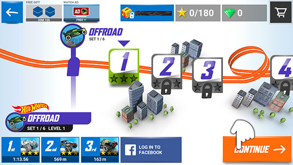 2、该模式为闯关类型,点击右下角的【CONTINUE】按钮即可开启第一关挑战。